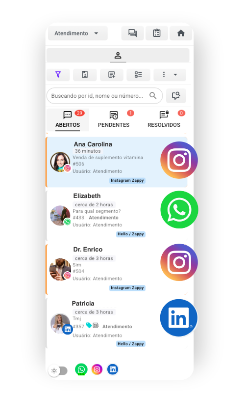 Ele permite adicionar vários atendentes no mesmo número, distribuir conversas por setor e usar tags para facilitar a localização das interações.