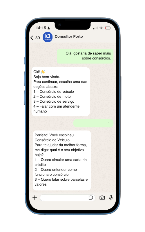 Não é um chatbot simples com respostas prontas. É inteligência artificial que compreende perguntas complexas, conduz conversas naturais como um membro experiente da sua equipe de acordo com as suas orientações e esclarece dúvidas de acordo com o seu prompt.