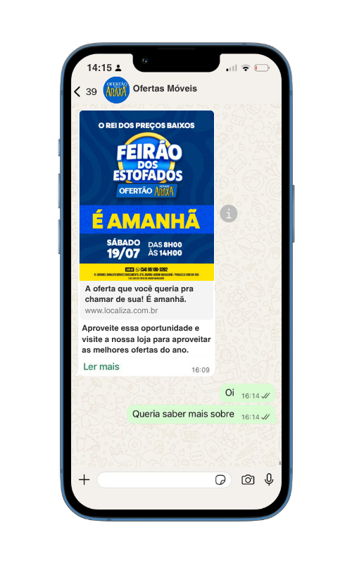 Envio de mensagens em massa livre de bloqueios com imagem, vídeo e botões para comunicação.